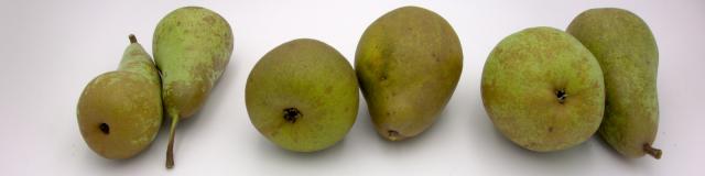 Im Bild sehen Sie drei wichtige Tafelbirnen: 'Conference', 'Gellerts Butterbirne' und 'Kaiser Alexander'